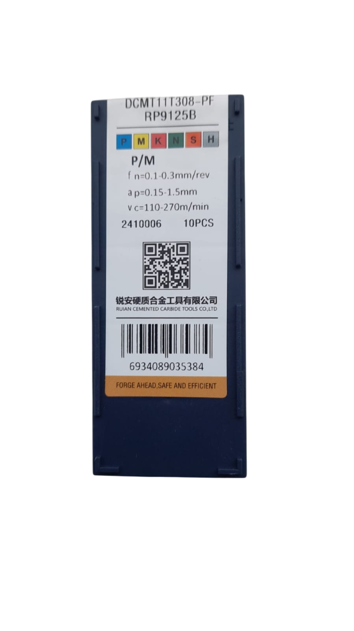 | – | DCMT11T308-PF | RP9125B | Glotnus apdirbimas | P / M | 0,15-1,50 | 0,1-0,3 | 110-270 |