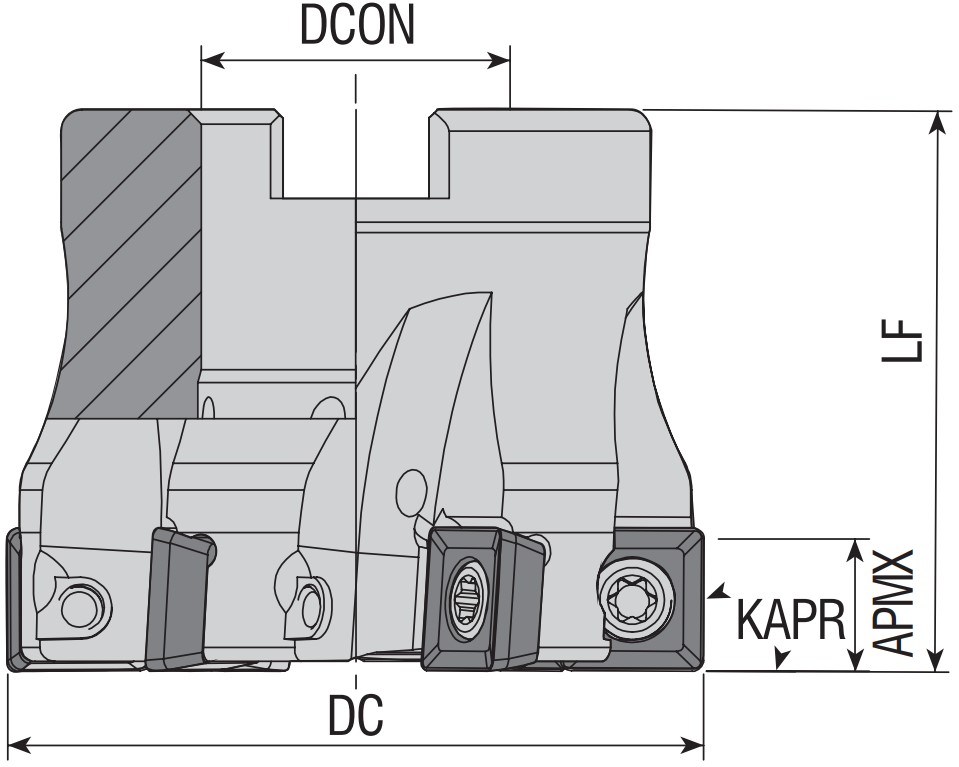 | Prekės kodas | Pjovimo briaunos kampas | Maks. pjovimo diametras DC | Plokštelės tipas | Plokštelių suderinamumas | Pjovimo gylis APMX | Atyvių plokštelių kiekis ZEFP | Montuojamas diamtras DCON | Įrankio aukštis LF | Aušinimas |