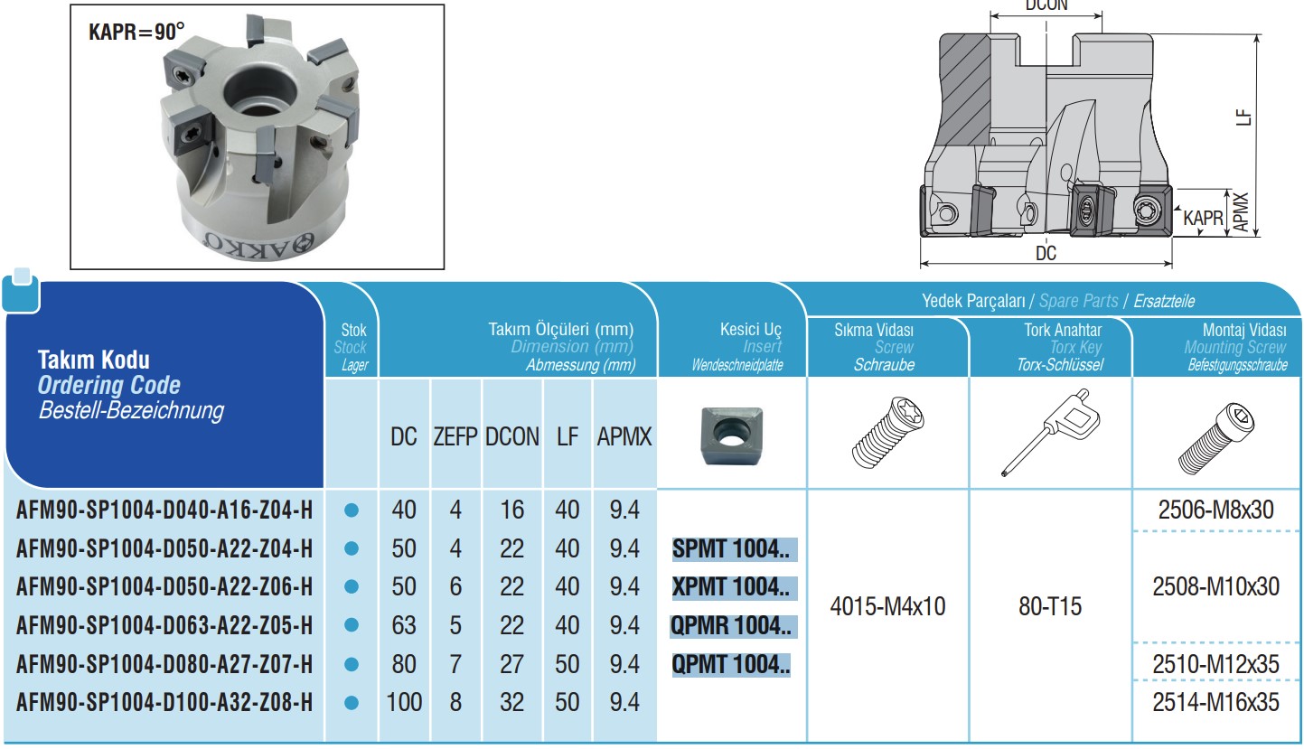 | AFM90-SP1004-D100-A32-Z08-H | 90° | 100 | SPMT 1004..