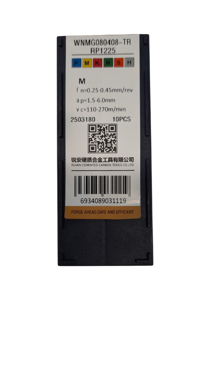 | – | WNMG080408-TR | RP1225 | Grubus apdirbimas | M | 1,5-6,00 | 0,25-0,45 | 110-270 |